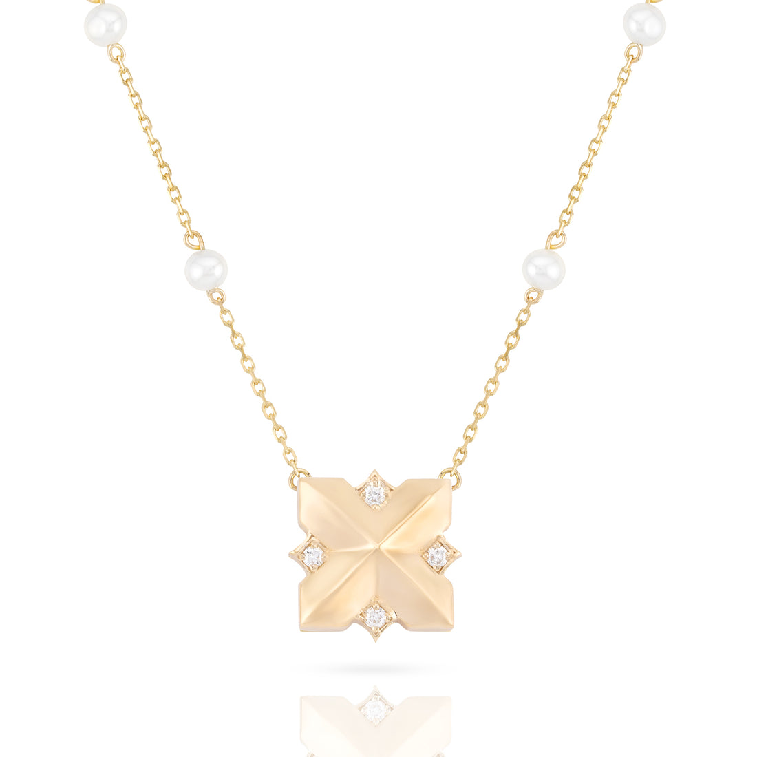 18K Yellow Gold Necklace with Diamond. Styles: Necklace. Material: Yellow Gold, Rose Gold, White Gold Gold: 18K Diamond: Round ...