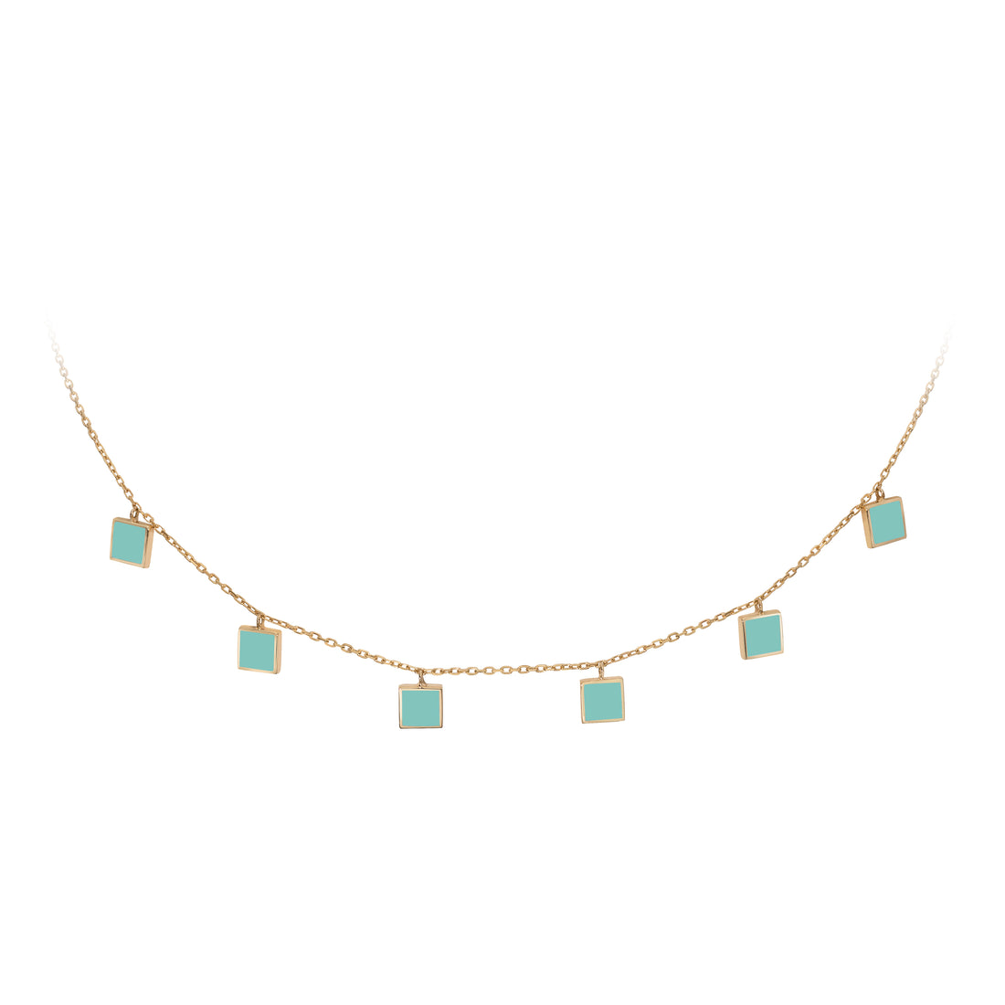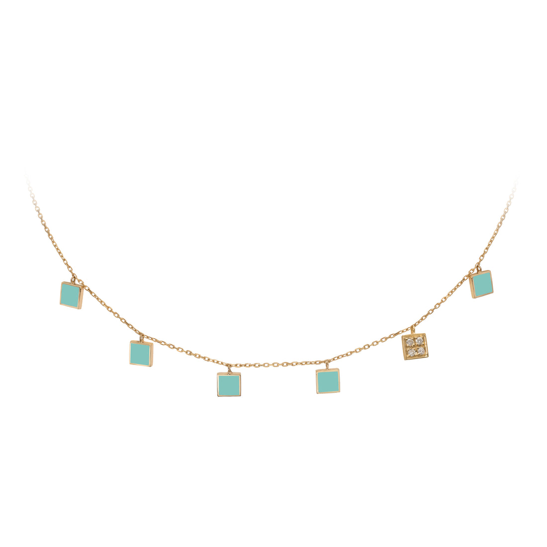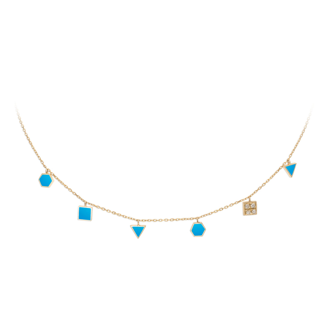 Geometric Choker Gold With Turquoise Enamel & Diamonds.