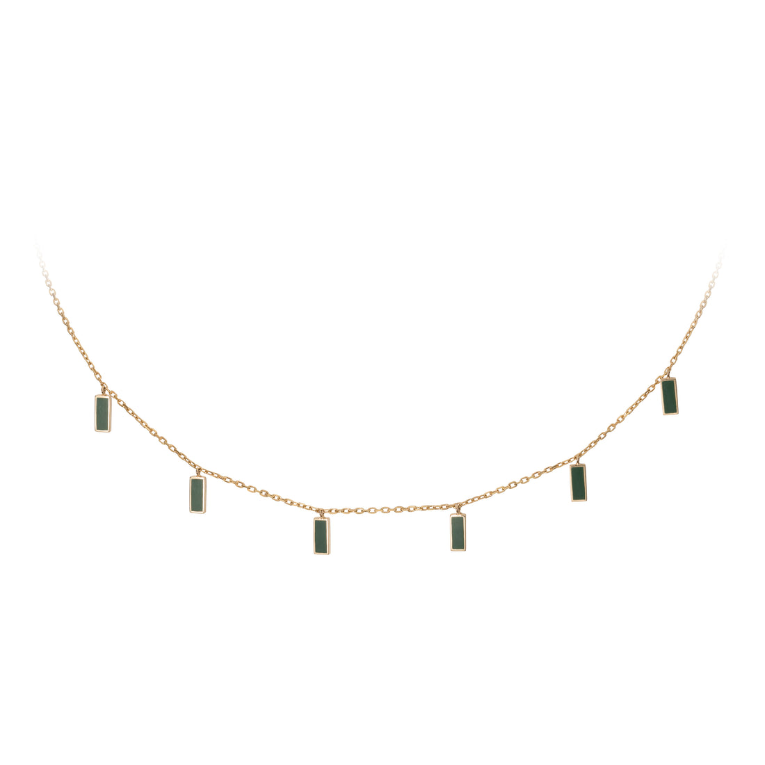 18K Yellow Gold long necklace , gold and white Enamel Bar with green perdote. Styles: Necklace Material: Yellow...