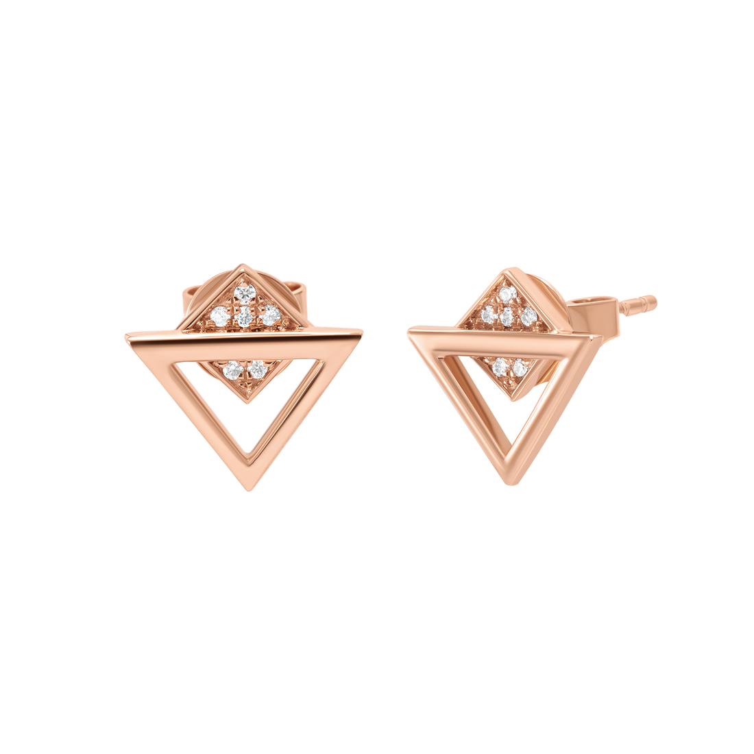Square Shape Earrings with Diamonds (Rose Gold)
