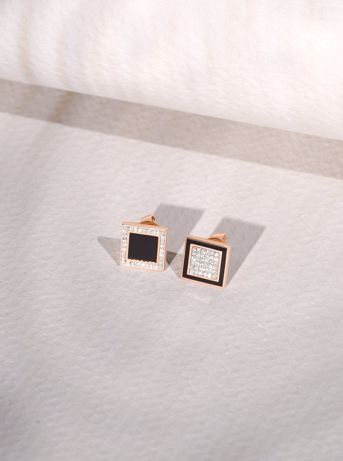 A pair of Earrings Black Enamel , Square shape Styles: Earrings Material: Yellow Gold, Rose Gold, White...
