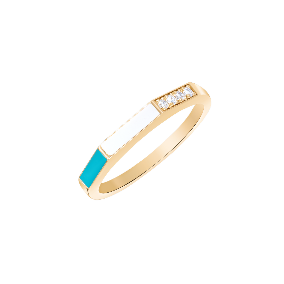 18k yellow gold and 2 Sides Diamonds and one Side Enamel Styles: Ring Gold: 18K...
