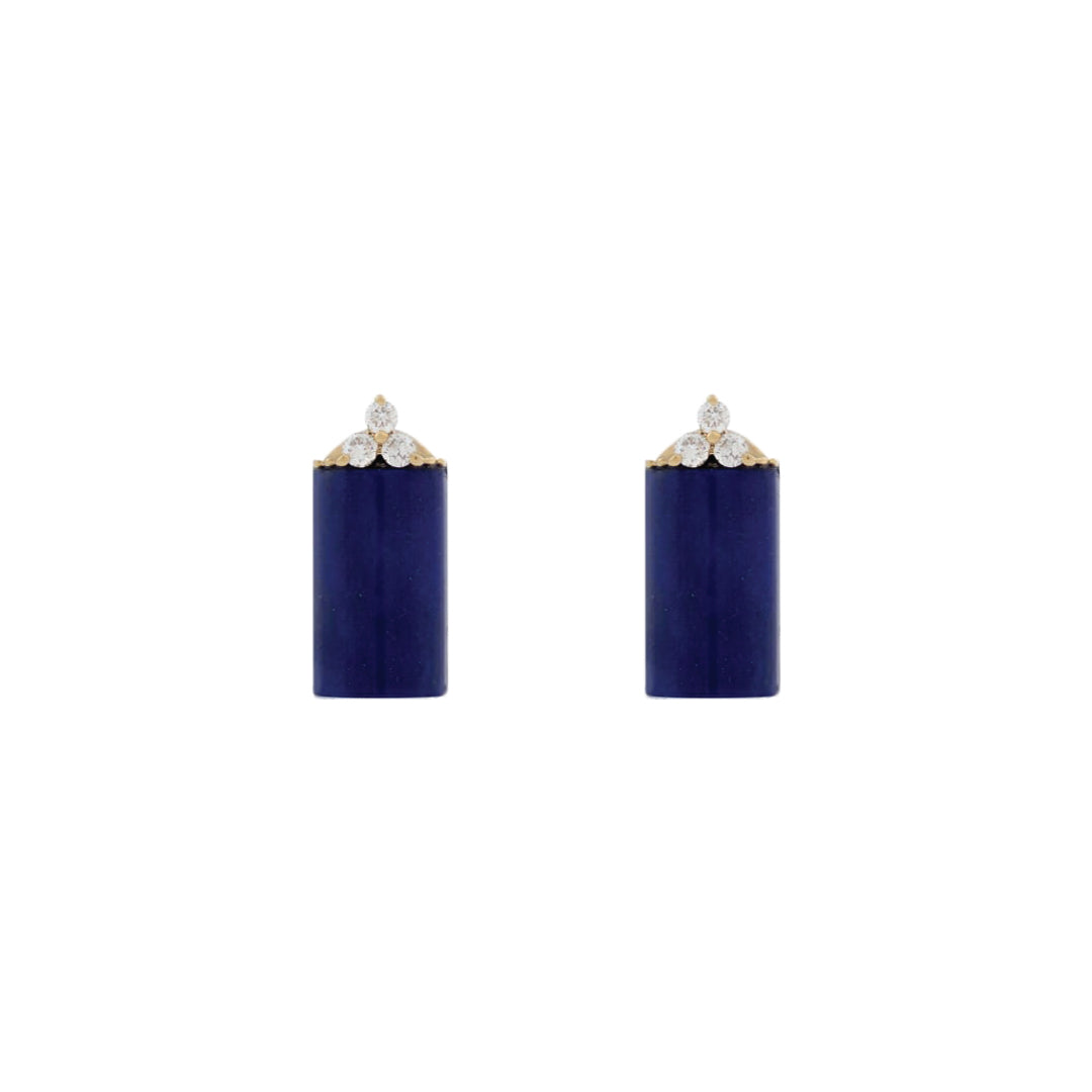 حلق ذهب عيار 18 مع حجر اللازورد الازرق الجميل و الألماس