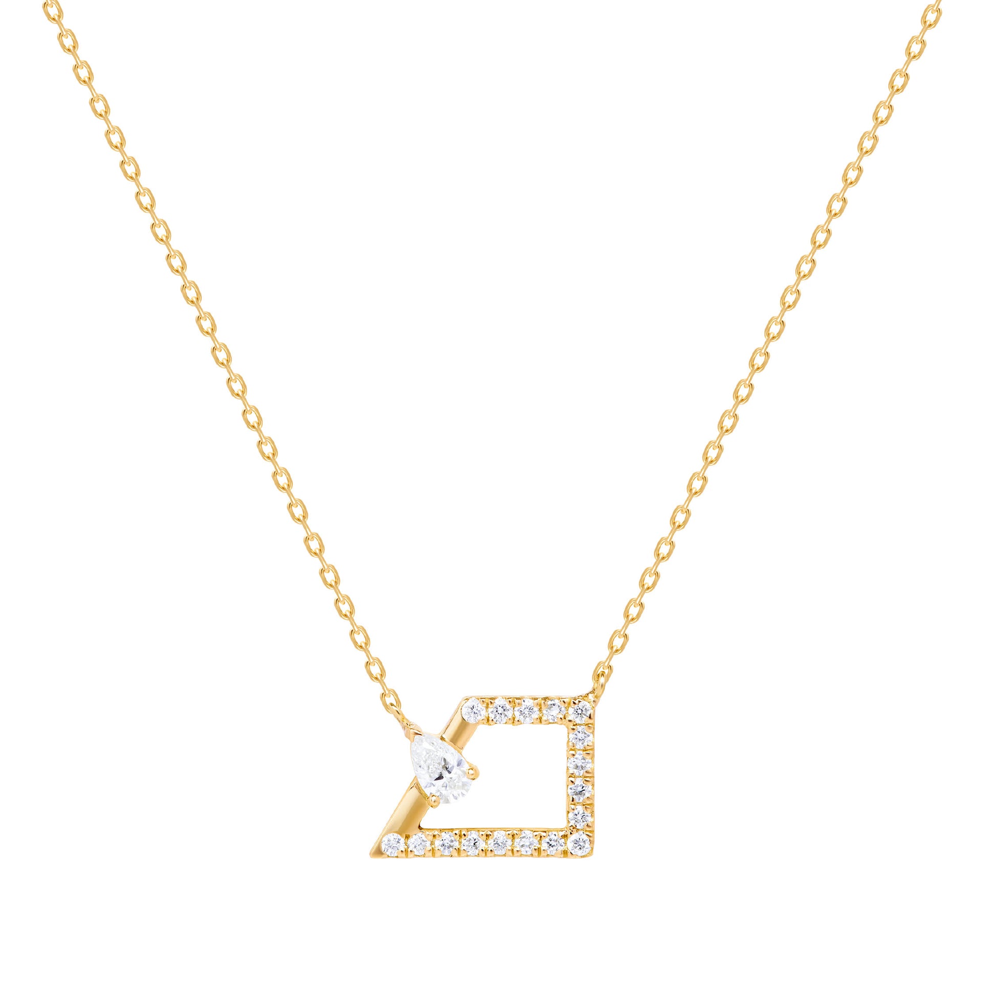 عقد ذهب عيار 18 مع حجر ألماس قطع فانسي شكل الدمعة و الشكل الدائري ألماس يمكن طلبها باللون الأبيض أو الأصفر أو الوردي