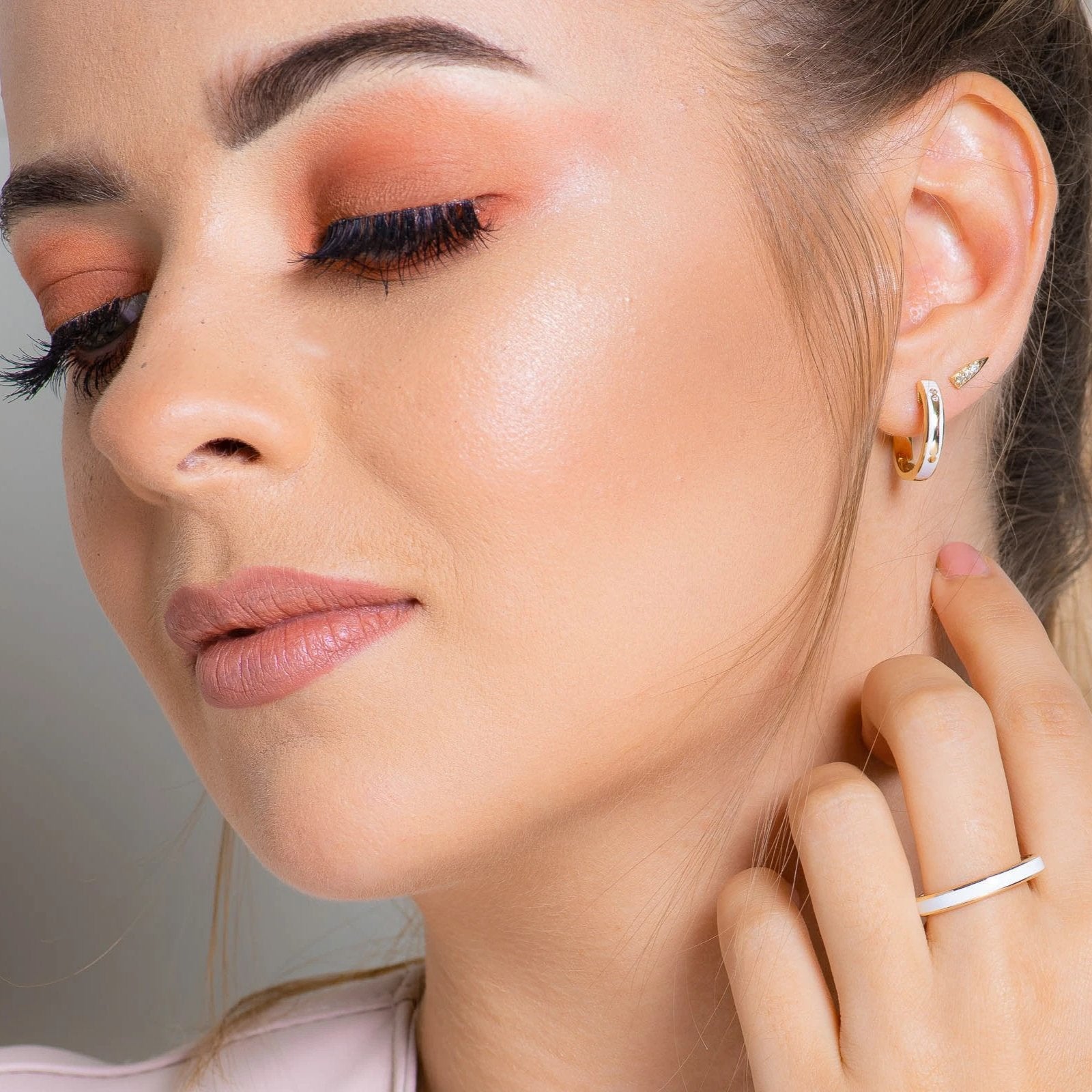 حلق مدور من الذهب و المينا الأسود و الأبيض ، لمحبي البساطة الأنيق