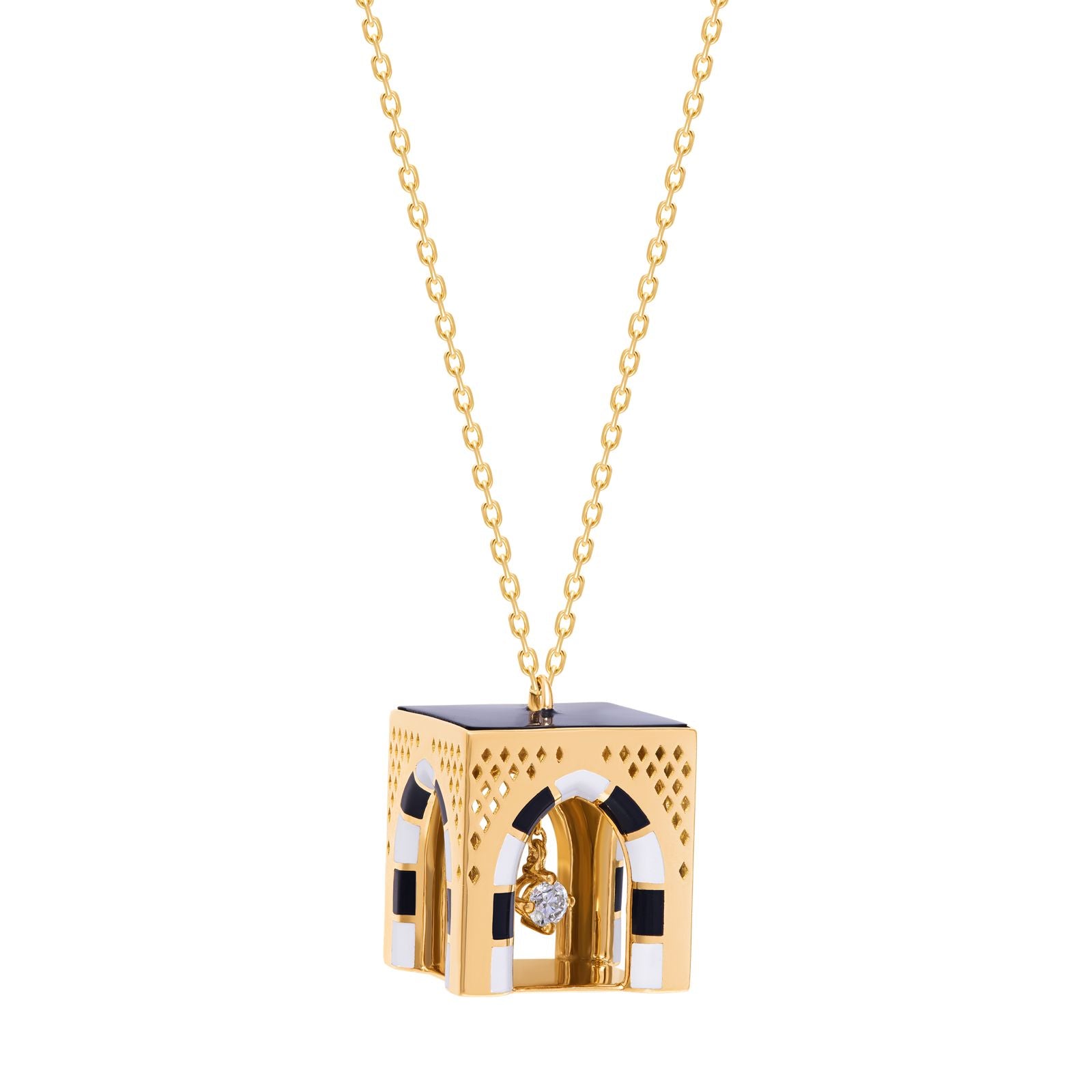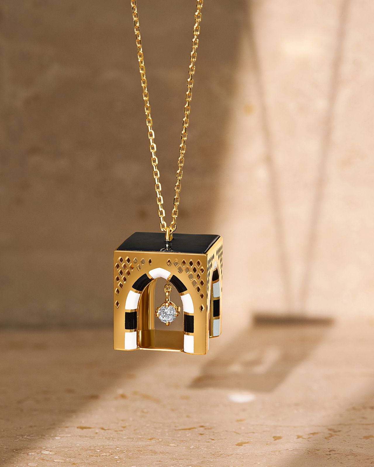 عقد ذهب عيار 18 مع المينا الملونة و حجرة ألماس معلقة داخل العقد