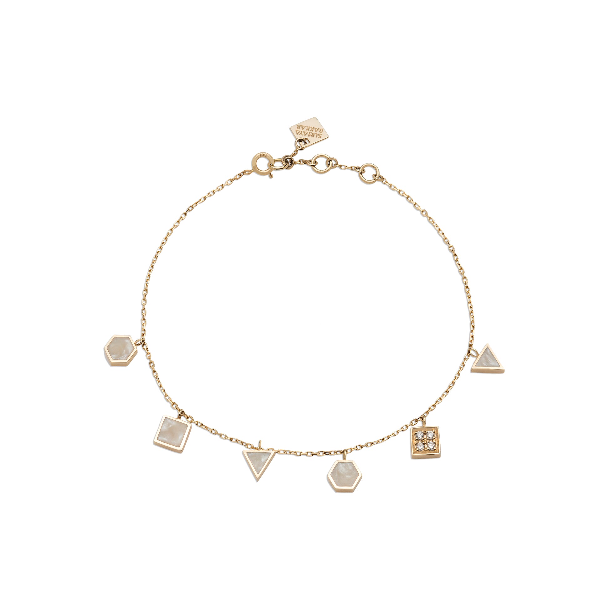 18K Yellow Gold Bracelet and Mother of Pearl Enamel with Diamonds.