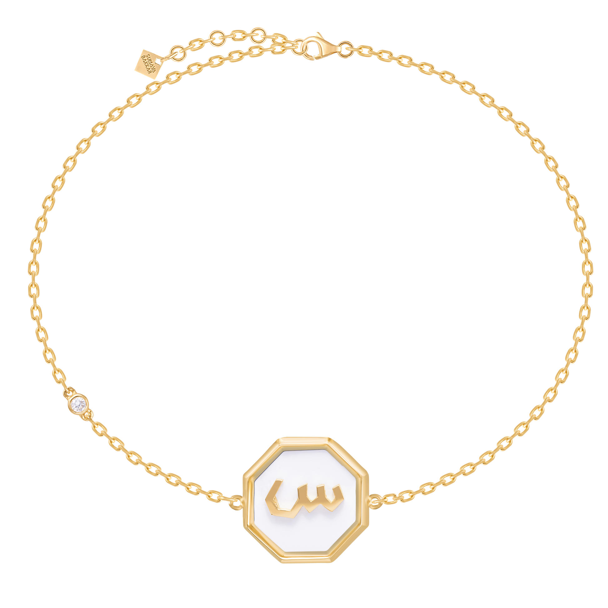 Sumaya Bakkar’s collection presents unique Arabic monograms derived from the basic geometric shape . The jewelry reflects a story and lasting memory about you and those you love.