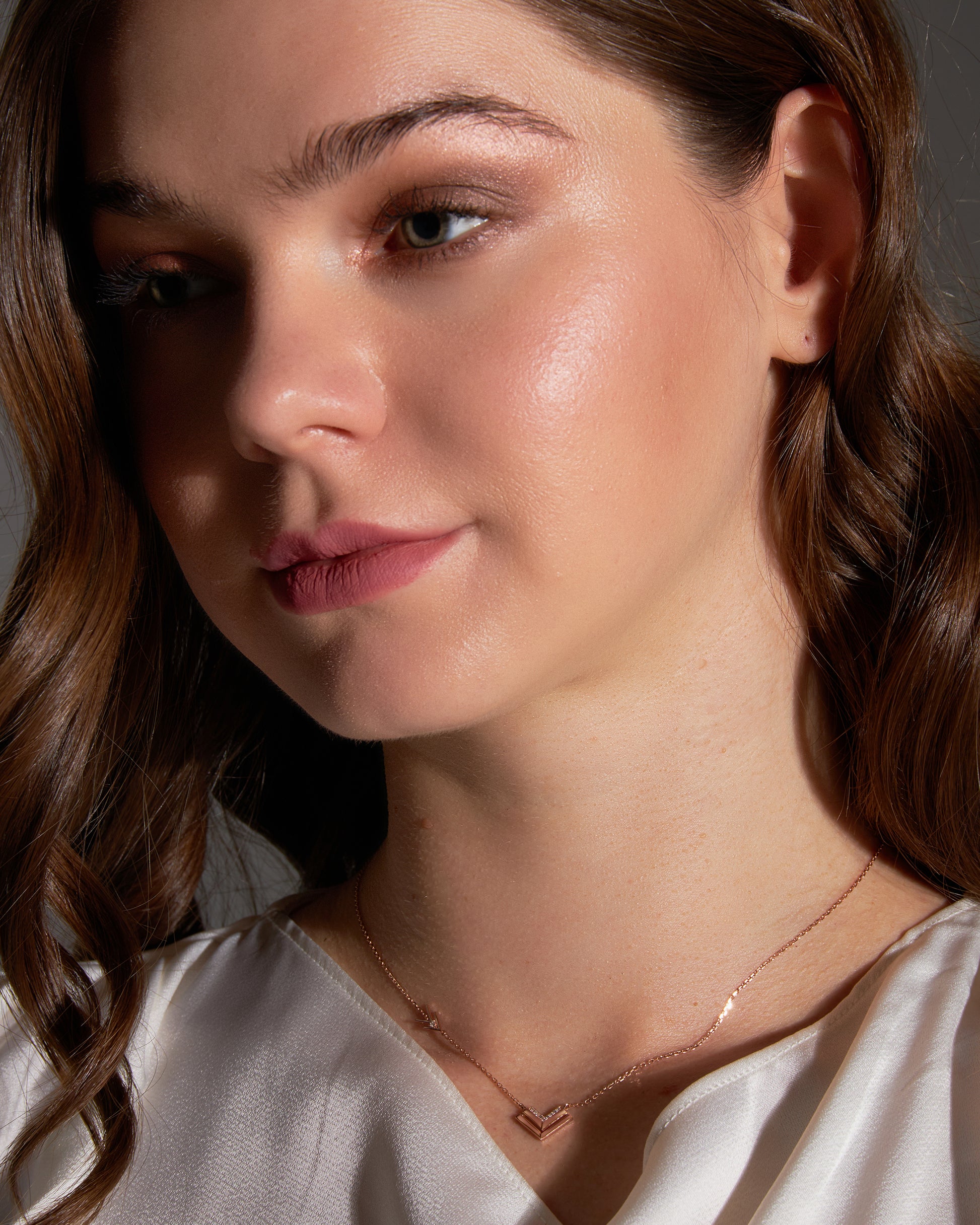 .مجموعة قلب من ذهب ,عقد من الذهب الوردي عيار 18 و ألماس