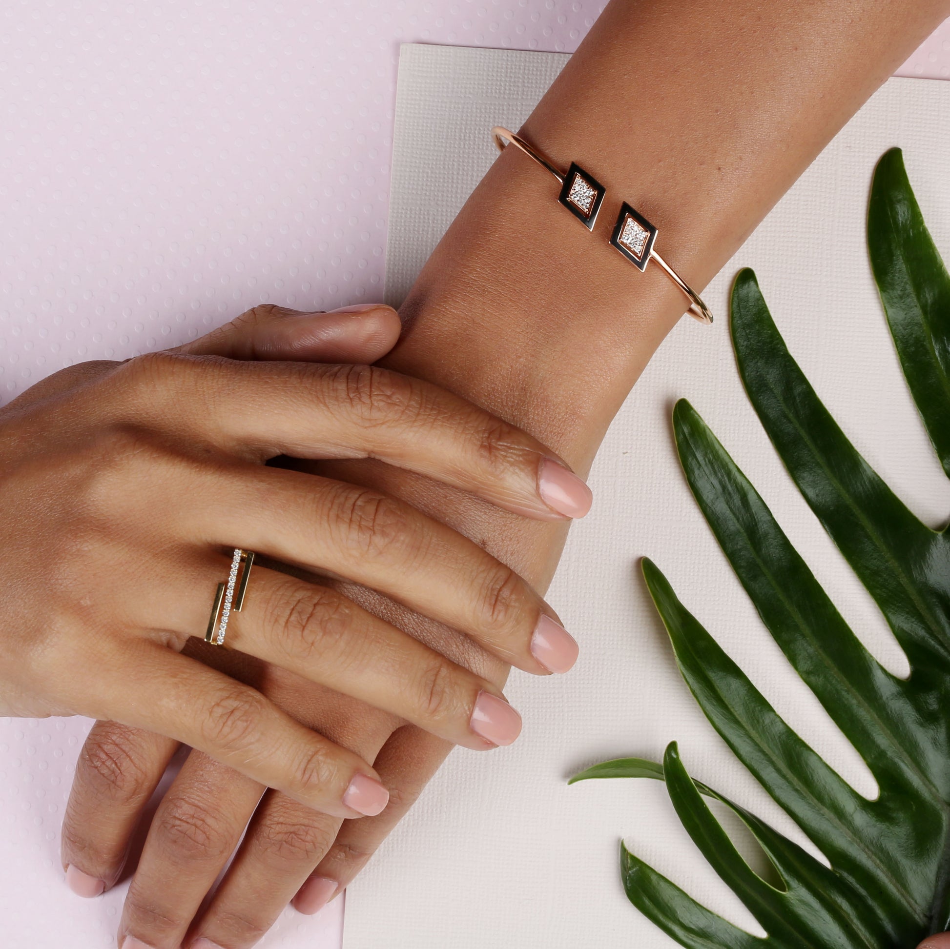 اسوارة بانجل معين الشكل (امتنان ) ثلاثي الأبعاد ذهب عيار 18مع المينا و الألماس