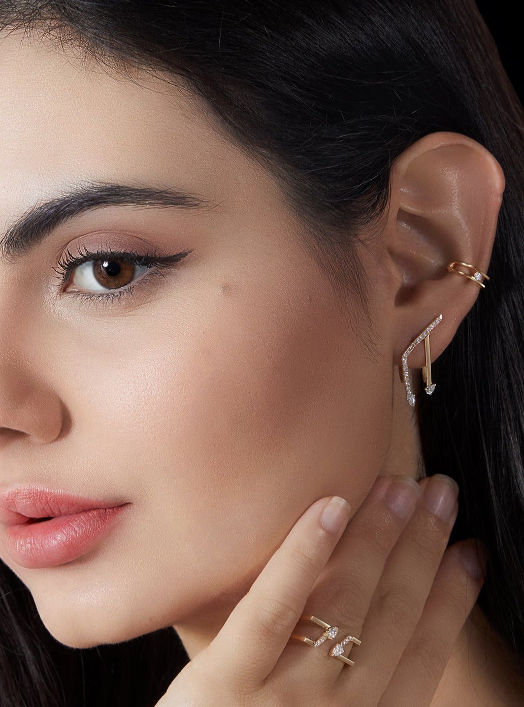 حلقة أذن واحدة بدون قفل مصممة من الذهب و الألماس |