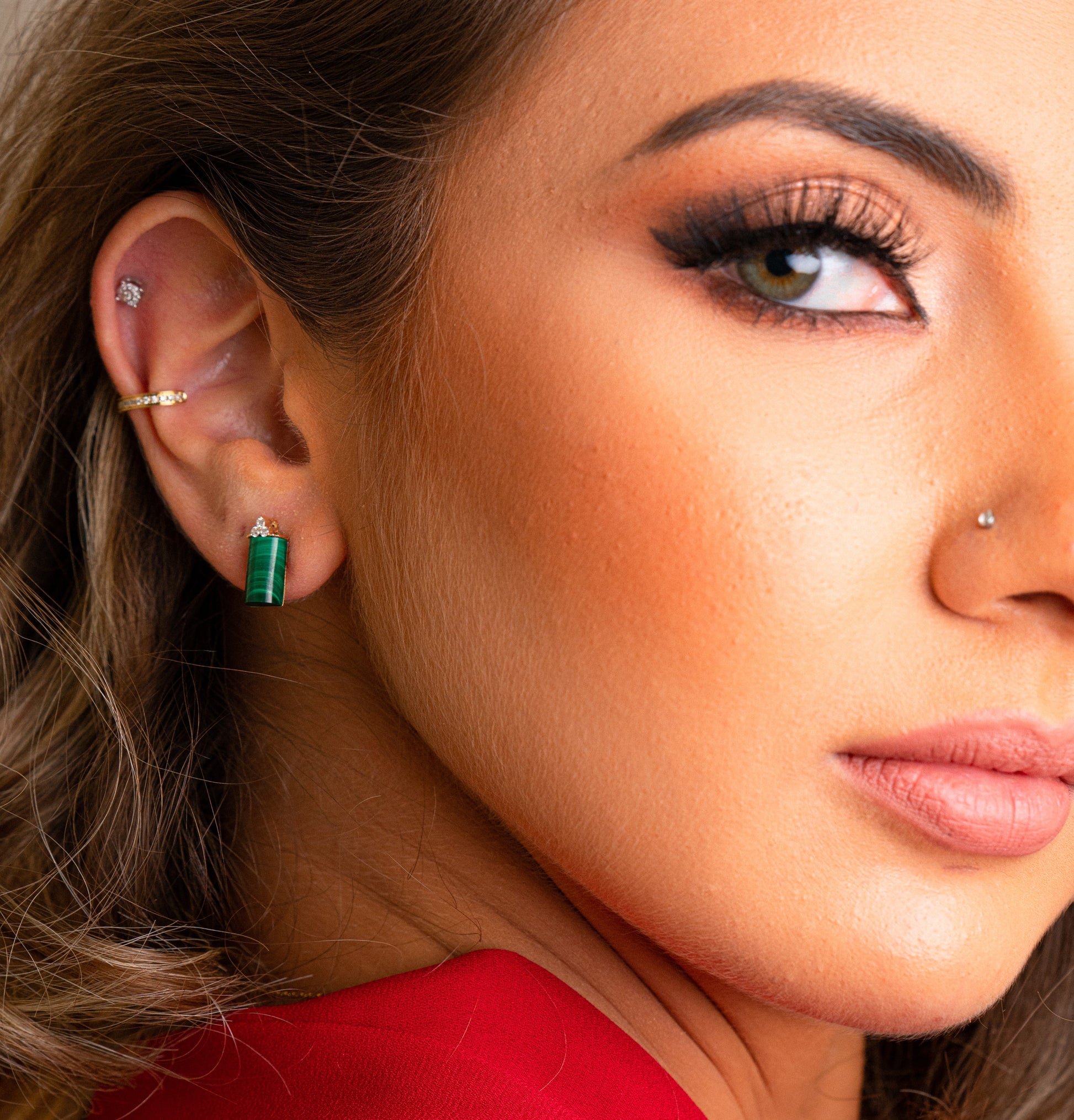 حلق ذهب عيار 18 مع حجر الملكايت الأخضر الجميل و الألماس