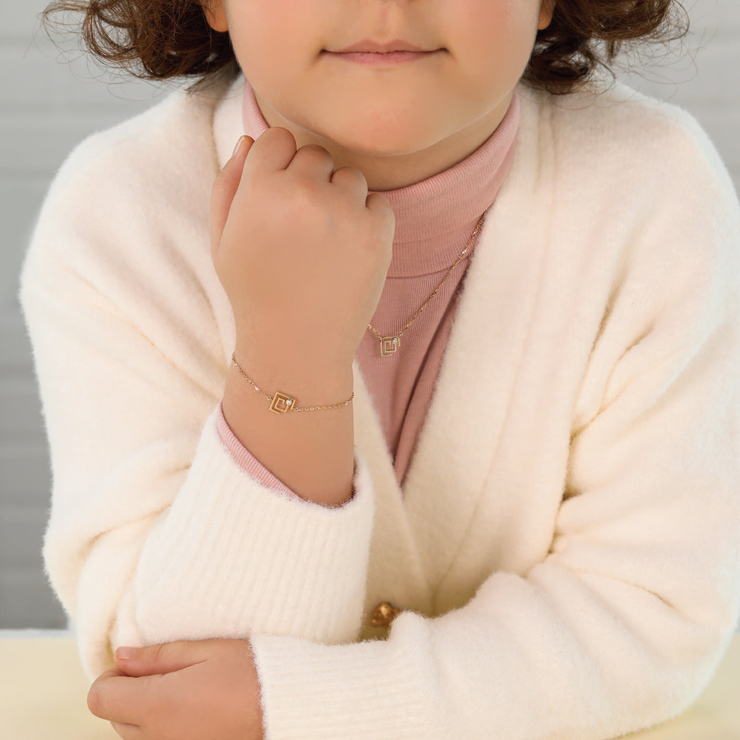 اسوارة من الذهب عيار 18 و ألماس عالي الجودة ، مقاس أطفال ، اسم التصميم أنا و شيء صغير مني ، قطعة ذات معنى ....