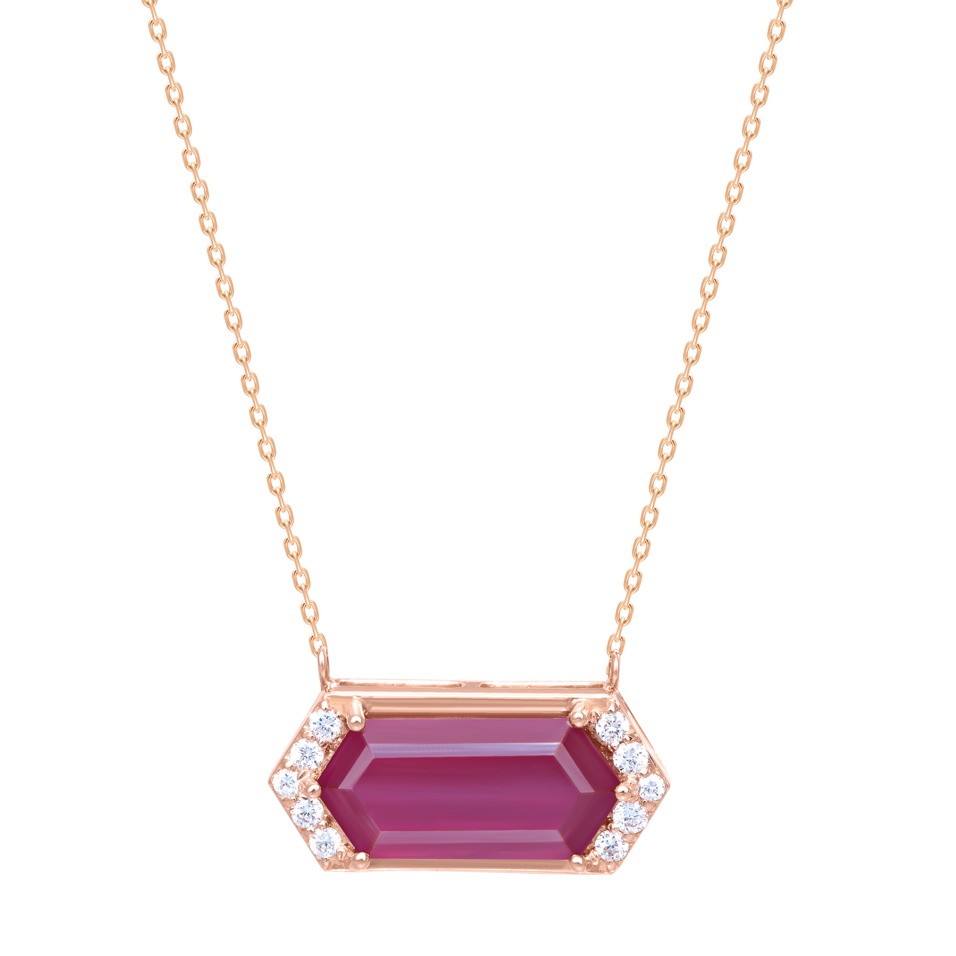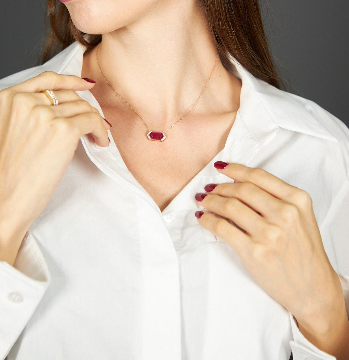 عقد ذهب عيار 18 مع الياقوت الطبيعي و الألماس