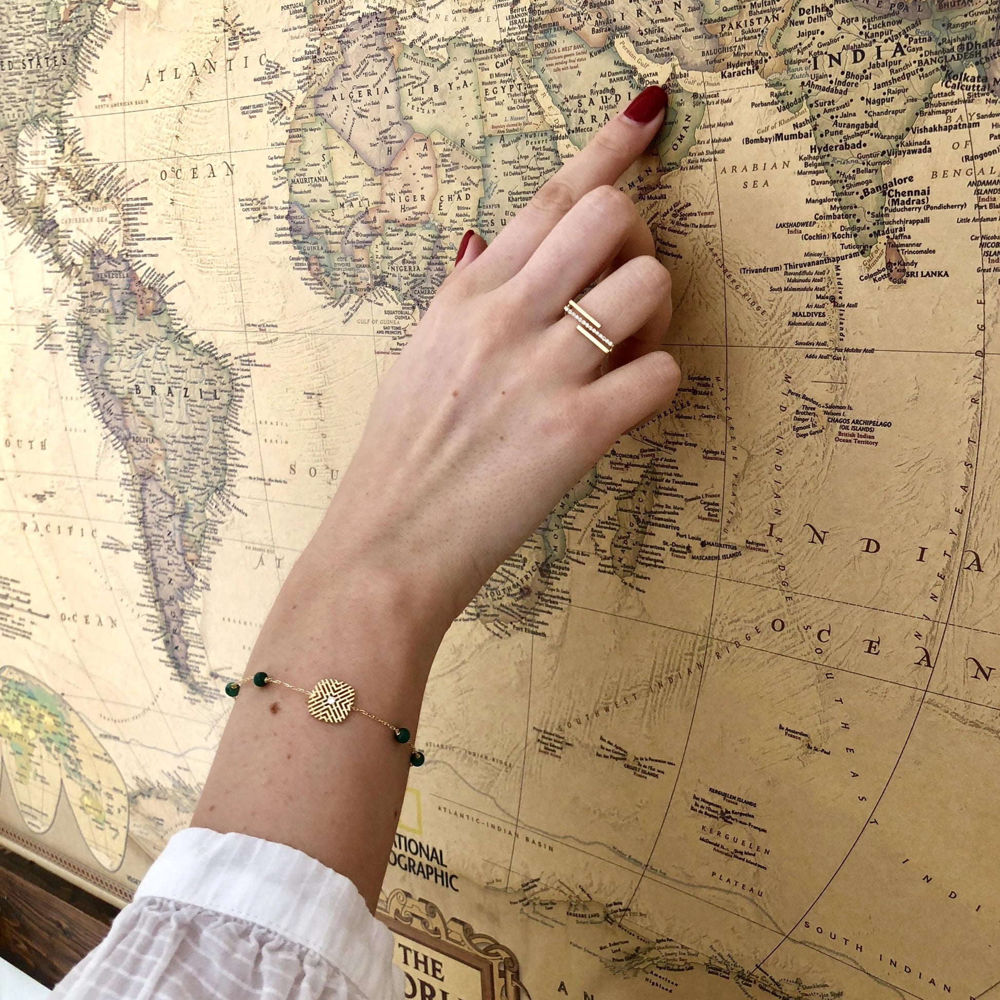 18k Yellow gold with Diamond and Malachite stone , very elegant and unique piece.