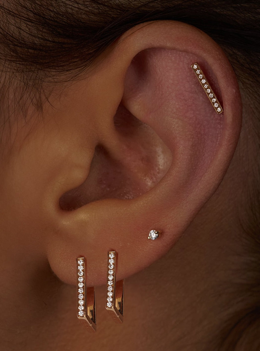 | زوج حلق من الذهب عيار 18 و ألماس من الجهة الداخلية و الخارجية ، بشكل مربع |