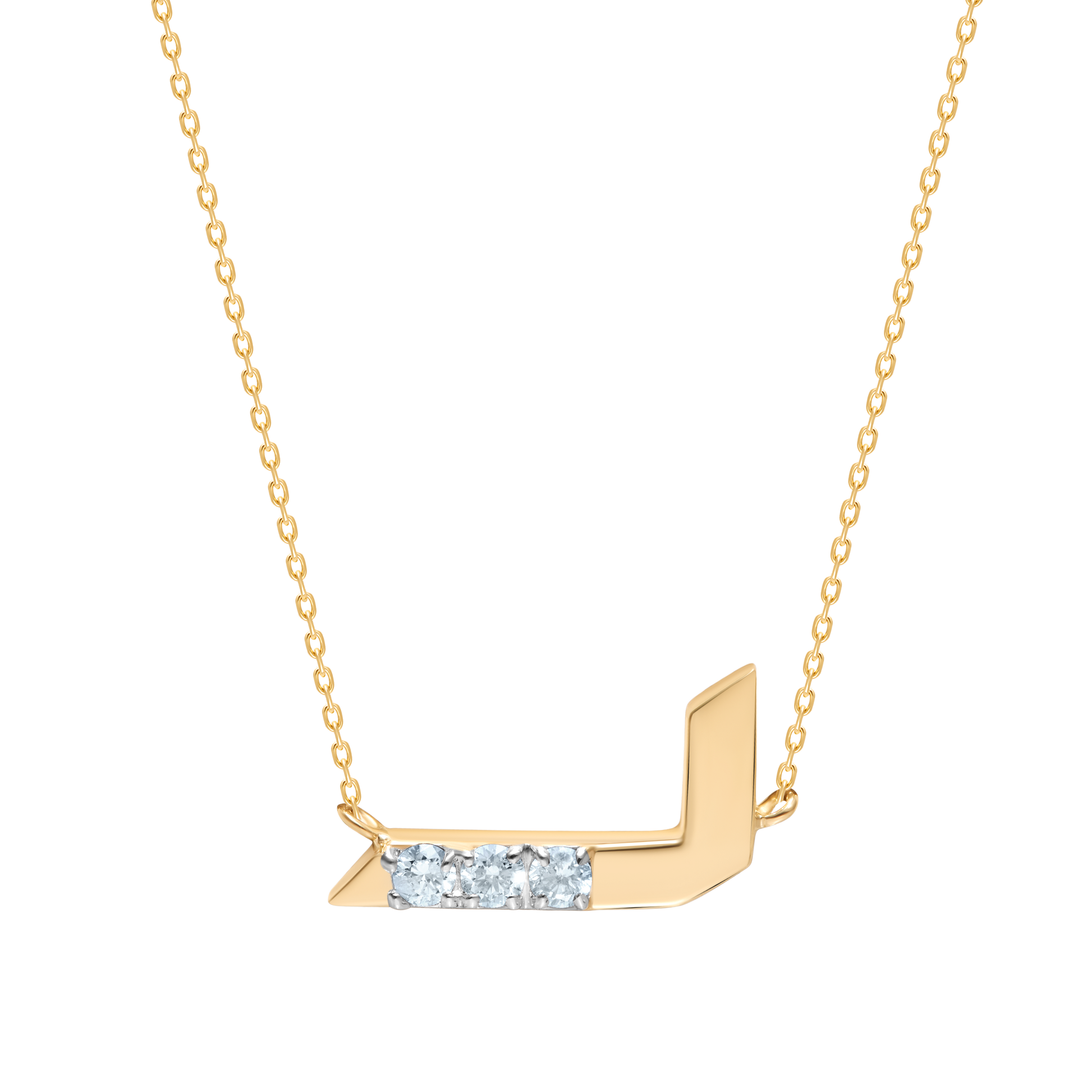(عقد ذهب عيار 18 و أحجار ألماس على الحرف مصممة بشكل (حرف الراء